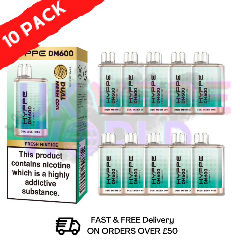 Fresh Mint Ice HYPPE BAR Puffs 600 Pack Of 10 Disposable Bars
