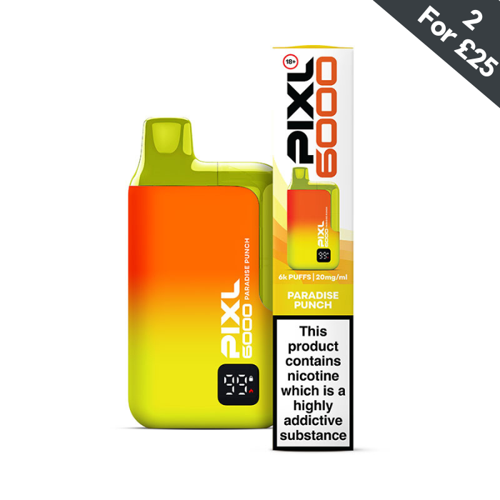 Discover a taste of paradise with Paradise Punch By Pixl 6000. This disposable vape brings together a tropical blend of sharp and sweet fruits, delivering a vibrant and refreshing experience straight from a tropical island. Indulge in all your favourite tropical fruits with this smooth and delicious vape.