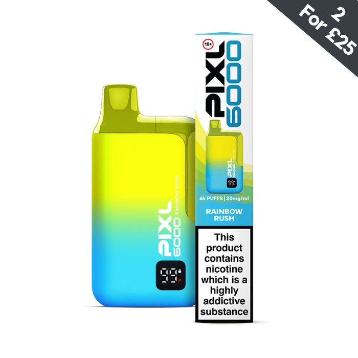 Rainbow Rush PIXL 6000 Disposable Vape is the perfect treat for candy lovers. Experience the burst of flavour from a blend of your favourite chewy, multi-coloured candies in every puff. Indulge in this sweet and satisfying vape, perfect for all-day enjoyment.