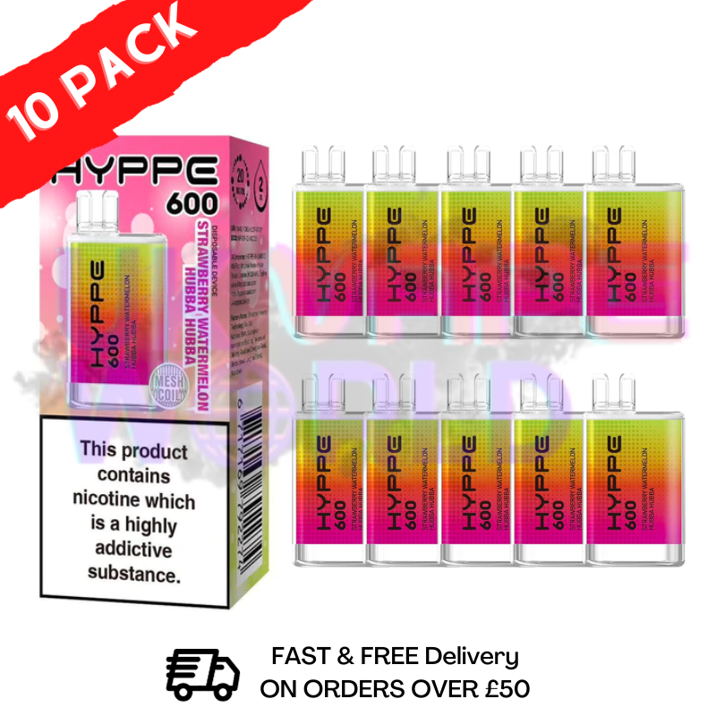 Strawberry Watermelon - HYPPE BAR Puffs 600 Pack Of 10 Disposable Bars