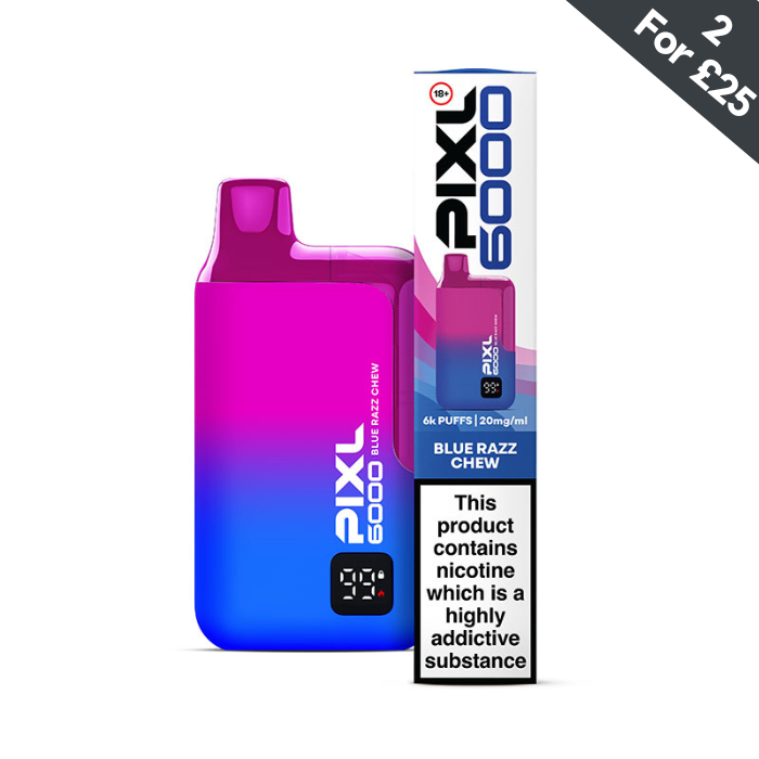PIXL 6000 each feature a rechargeable 650mAh battery featuring 6000 puffs. Each kit features a built in 2ml pod and a 10ml e-liquid refill bottle that clips into the device itself. There are many delicious flavours to choose from, these disposable vape pens are useful for people wanting to quit smoking. Enjoy a smart screen that shows battery life and safety lock status.