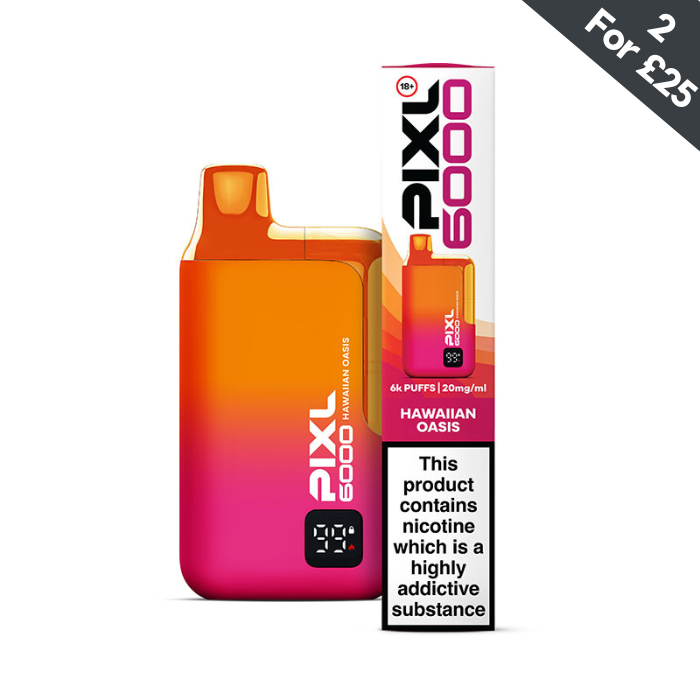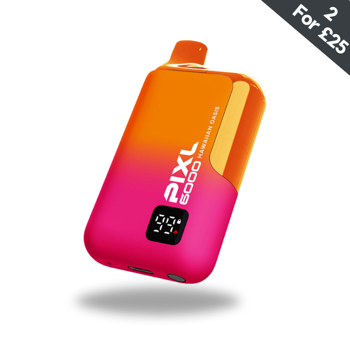 Indulge in a tropical paradise with Hawaiian Oasis By Pixl 6000. This disposable vape boasts a delicious blend of sharp pineapple, succulent mango, and sweet passionfruit, all enhanced by a refreshing hint of menthol. Experience a true oasis with every puff.