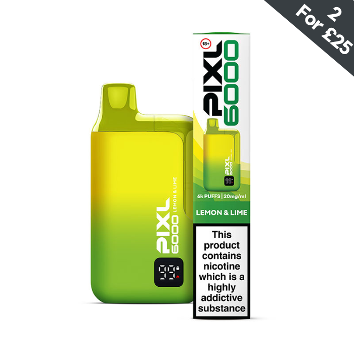 Experience a refreshing citrus treat with Lemon & Lime By Pixl 6000. This disposable vape features a perfect balance of tangy limes and sharp lemon, without being too sweet. Enjoy the crisp and invigorating flavours without any overwhelming sweetness.