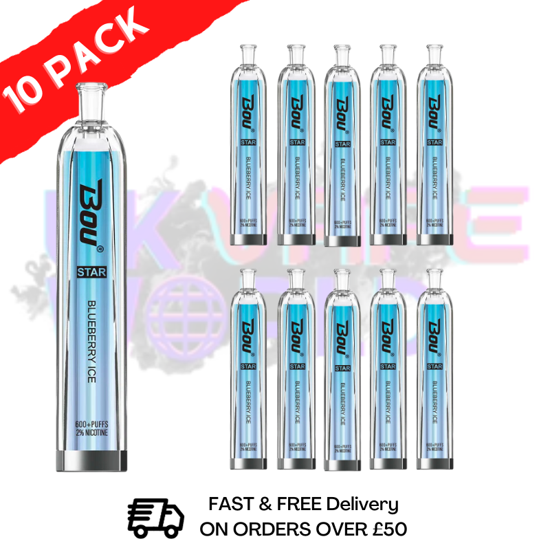 Blueberry ICE - BOU STAR BAR 600Puff Disposable Pod Kit delivers a sweet and fruity blueberry flavor with a cooling menthol. Puff this rich flavor for a balanced mix of sweet and icy refreshment.
